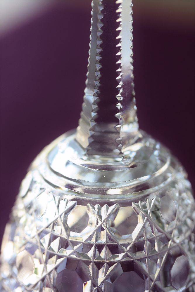 Calice en cristal « demi-fort » de forme tulipe, tille profonde. Taille dite « diamants pierreries ».