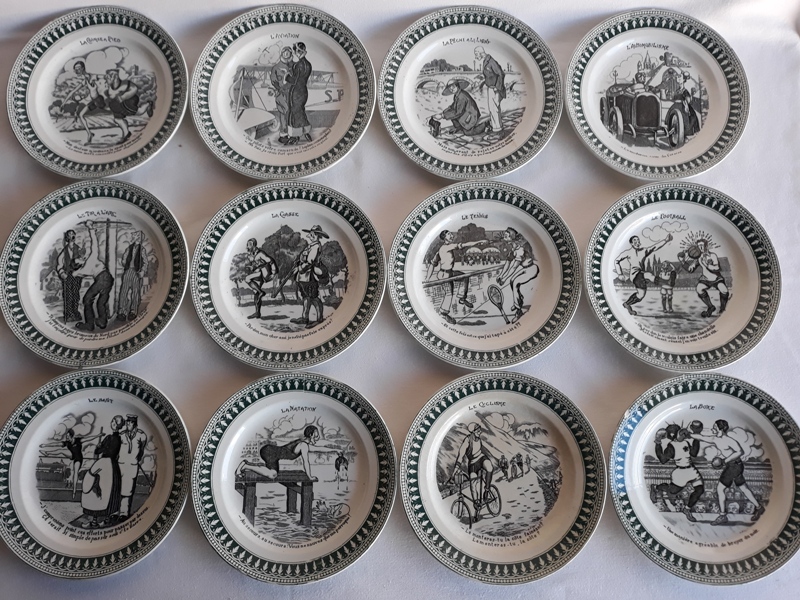 Service complet d’assiettes parlantes, dites aussi à histoires ou à messages.