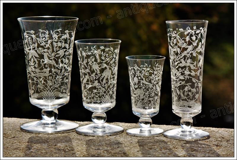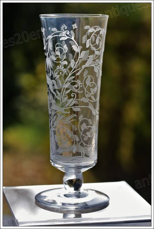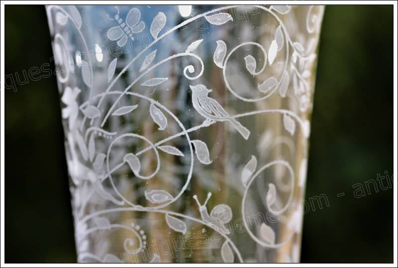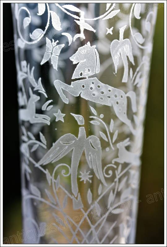 Cristal soufflé à la bouche à décors de végétaux et animaux.