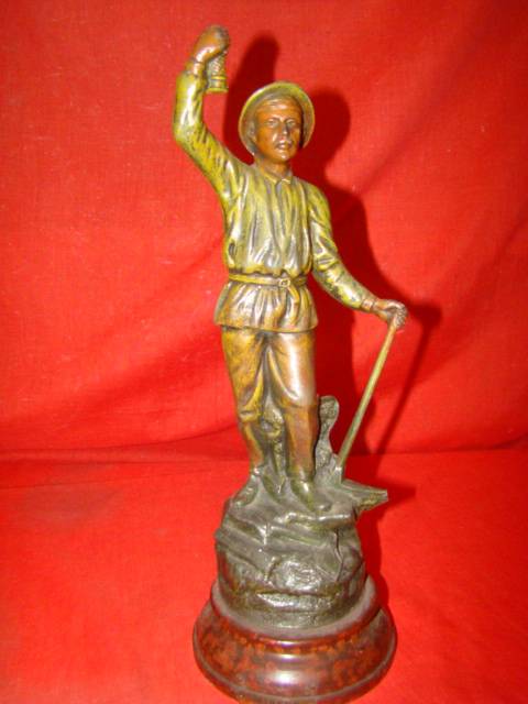 statuette de mineur en régule polychrome sur socle bois époque fin 19éme