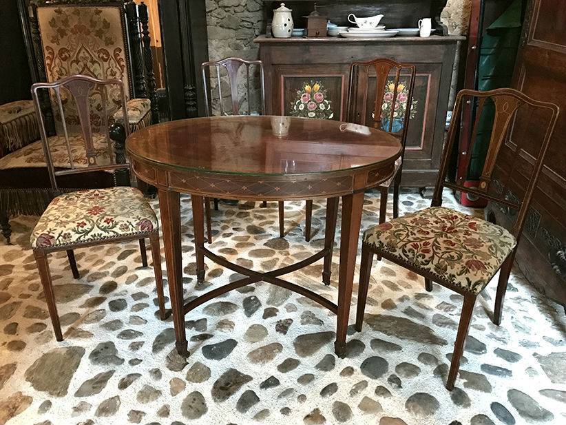 Table et 4 chaises acajou et placage, style anglais. XXe