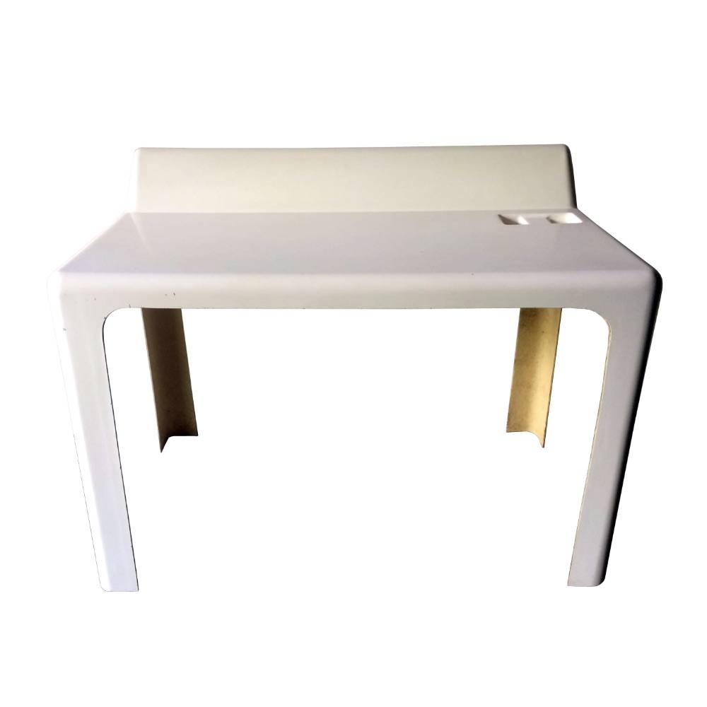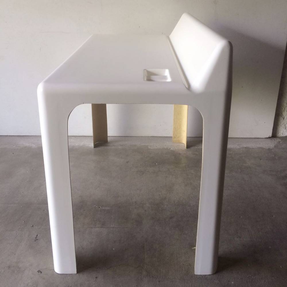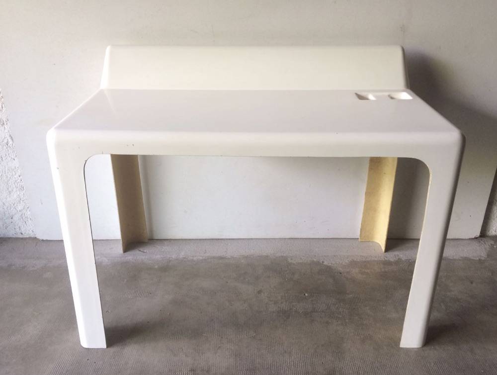 Un bureau d’étude modèle « Study » de Patrick Gingembre. Structure en fibre de verre laquée blanche. Bon état général. Editeur Paulus SPDM. 1971. Documentation : L’utopie du tout plastique. 1991.