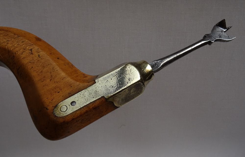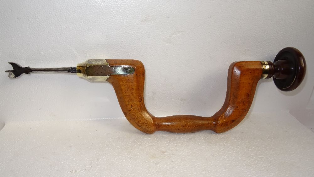 Vilebrequin d’ébéniste bois et laiton 19ème – outil ancien