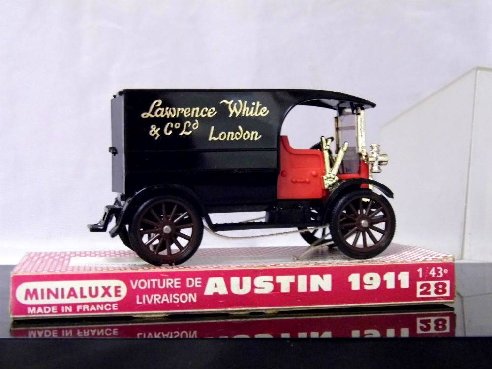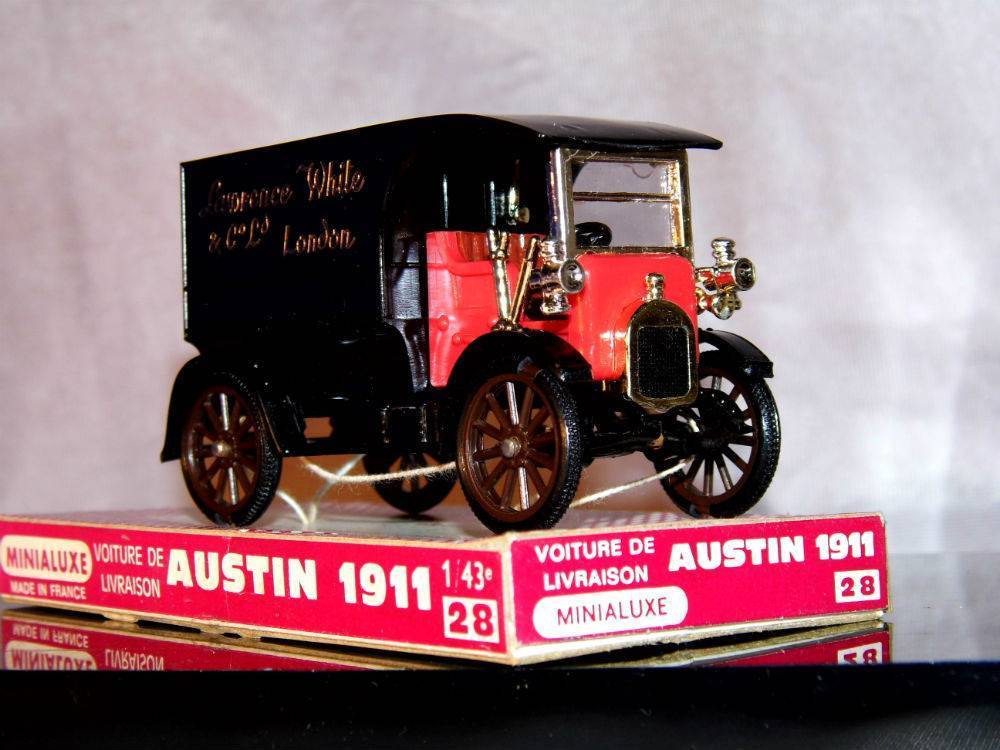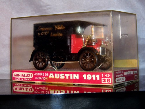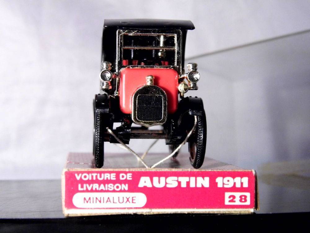 Voiture MINIALUXE AUSTIN 1911 numéro 28 – Made in France – 1/43 – Boite d’origine – Complète aucun manque et aucun accident – Neuf Jamais exposé en dehors de sa boite –